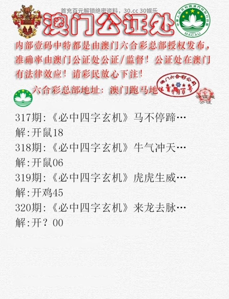 | 323期公证处:虎虎生威 解:像老虎一样有种令人敬畏的气势 本期取肖:羊鼠鸡狗猴猪 |